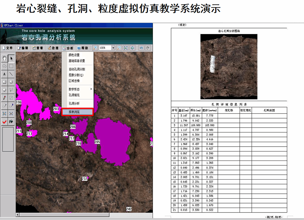 傳統(tǒng)實驗由老師手持巖心實物、指導(dǎo)學(xué)生觀察、描述巖心。由于巖心實物匱乏,教學(xué)素材極其有限。通過虛擬仿真技術(shù),可以通過各大油田巖心庫收集國內(nèi)外巖心實物的數(shù)字圖像,結(jié)合計算機技術(shù)實現(xiàn)巖心孔洞、裂縫、粒度虛的擬仿真教學(xué)。通過數(shù)字圖像處理技術(shù)對巖心圖像進行預(yù)處理,快速確定裂縫的邊界,達到巖心圖像處理和人機交互方式。研究巖心孔洞、裂縫、粒度圖像分析技術(shù),實現(xiàn)了自動提取孔洞、裂縫、粒度目標(biāo),自動統(tǒng)計計算相關(guān)參數(shù),并結(jié)合試驗室常規(guī)物性測試和測井資料進行參數(shù)分析評價,從而解決了以往人工測定,測量數(shù)值存在較大誤差,而且費工費時,轉(zhuǎn)化參數(shù)難度大等問題,深化了對巖心這一地質(zhì)基礎(chǔ)資料的應(yīng)用,對于裂縫、孔洞型油氣藏的勘探與開發(fā)具有重要意義。
